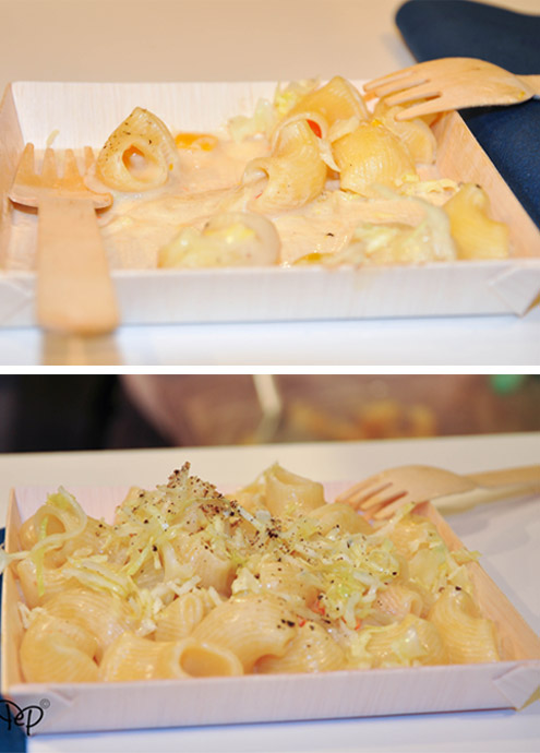 Sarà l’entusiasmo del “novellino”, ma questo evento l’ho amato per diversi motivi. Oltre ad aver conosciuto persone nuove, incontrato tante blogger con cui difficilmente si ha modo di scambiare quattro chiacchiere dal vivo, esser circondata da “cucina”, ecc. ecc… è stata una scoperta vedere le diverse prospettive e i diversi modi di vivere la cucina di ogni chef. Chi in modo più classico, chi più scientifico, chi tradizionale, ogniuno ha portato qualcosa di suo e non per forza lontano dal mondo comune, nonostante si parlasse di alta cucina.