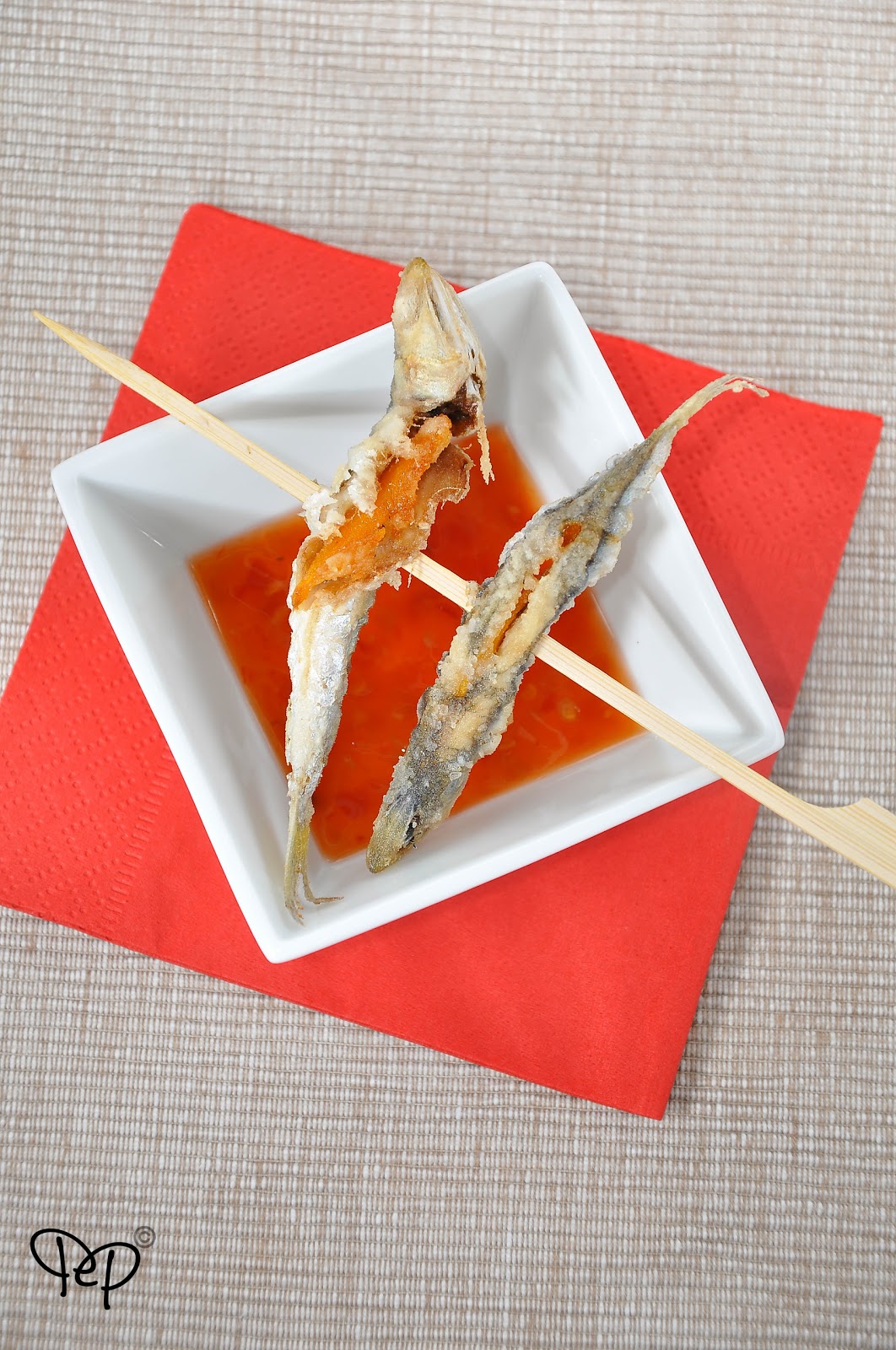 Asciugare su carta assorbente e servire. Si possono mangiare sia da soli che abbinate a qualche salsa. Nella foto vedete la salsa agrodolce, abbinamento perfetto!