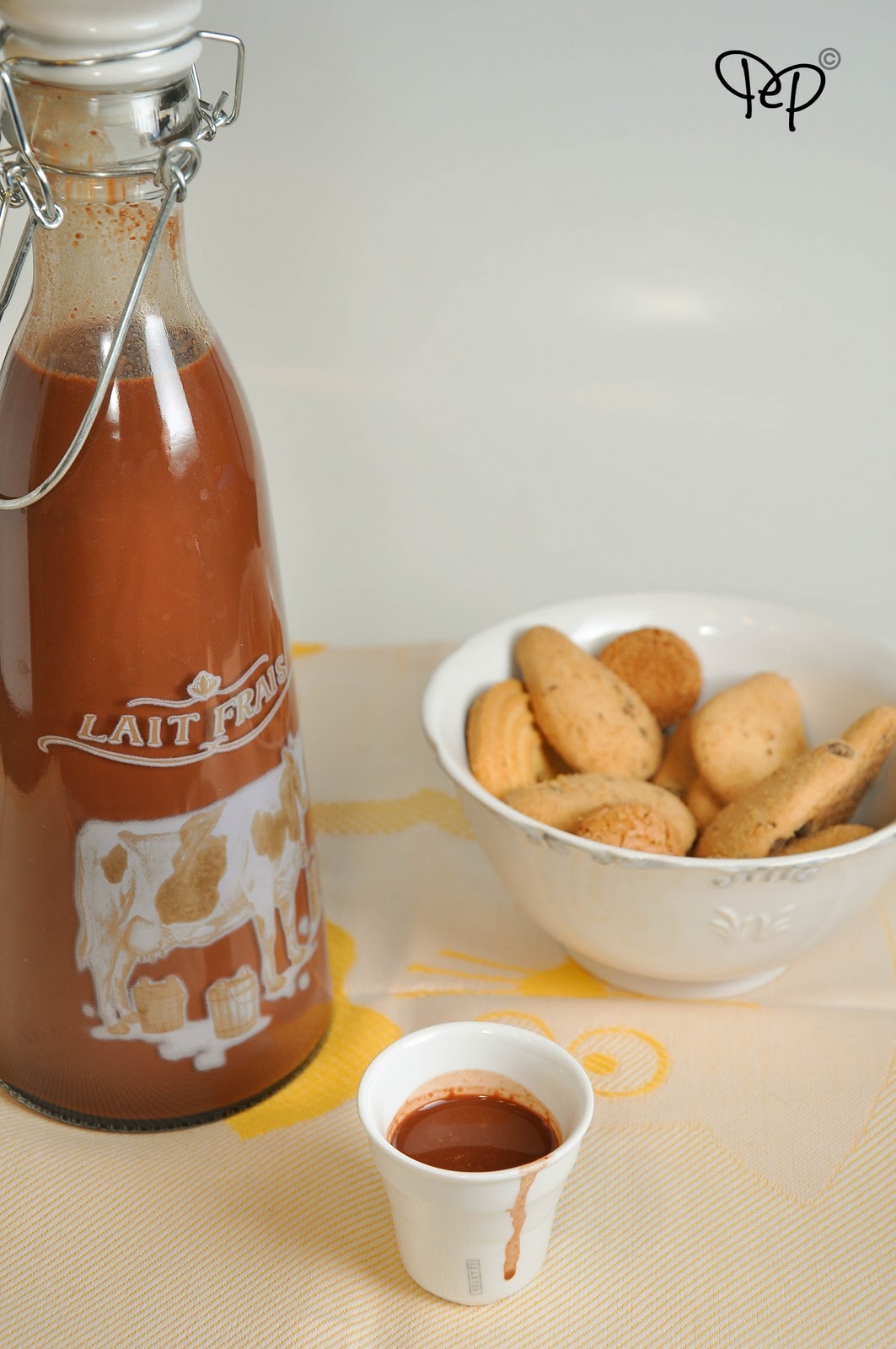 Pensavate che fossi impazzita e vi avessi fatto una cioccolata calda??? Nu nu, solo ho deciso di mimetizzare la dose alcolica con una bella bottiglia del latte che mi sembrava un simpatico controsenso. 🙂