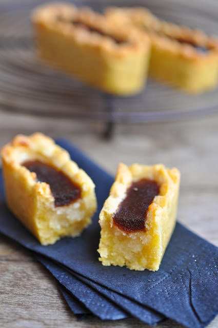 Montate lo zucchero con il burro, unire l’uovo leggermente sbattuto e di seguito la farina di mandorle un po’ per volta e la fecola. Spalmate la crema frangipane sulla frolla stesa in ogni stampino, avendo cura di non riempirla completamente,ma lasciando un dito abbondante dal bordo della frolla.