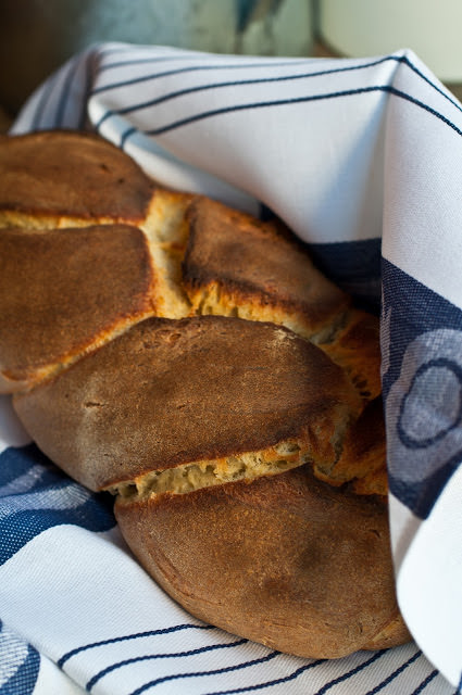 Bake at 250 ° for 35-40 minutes on baking stone. When cooked, place it verticallyin the oven, leave oven door open a crack and let cool.