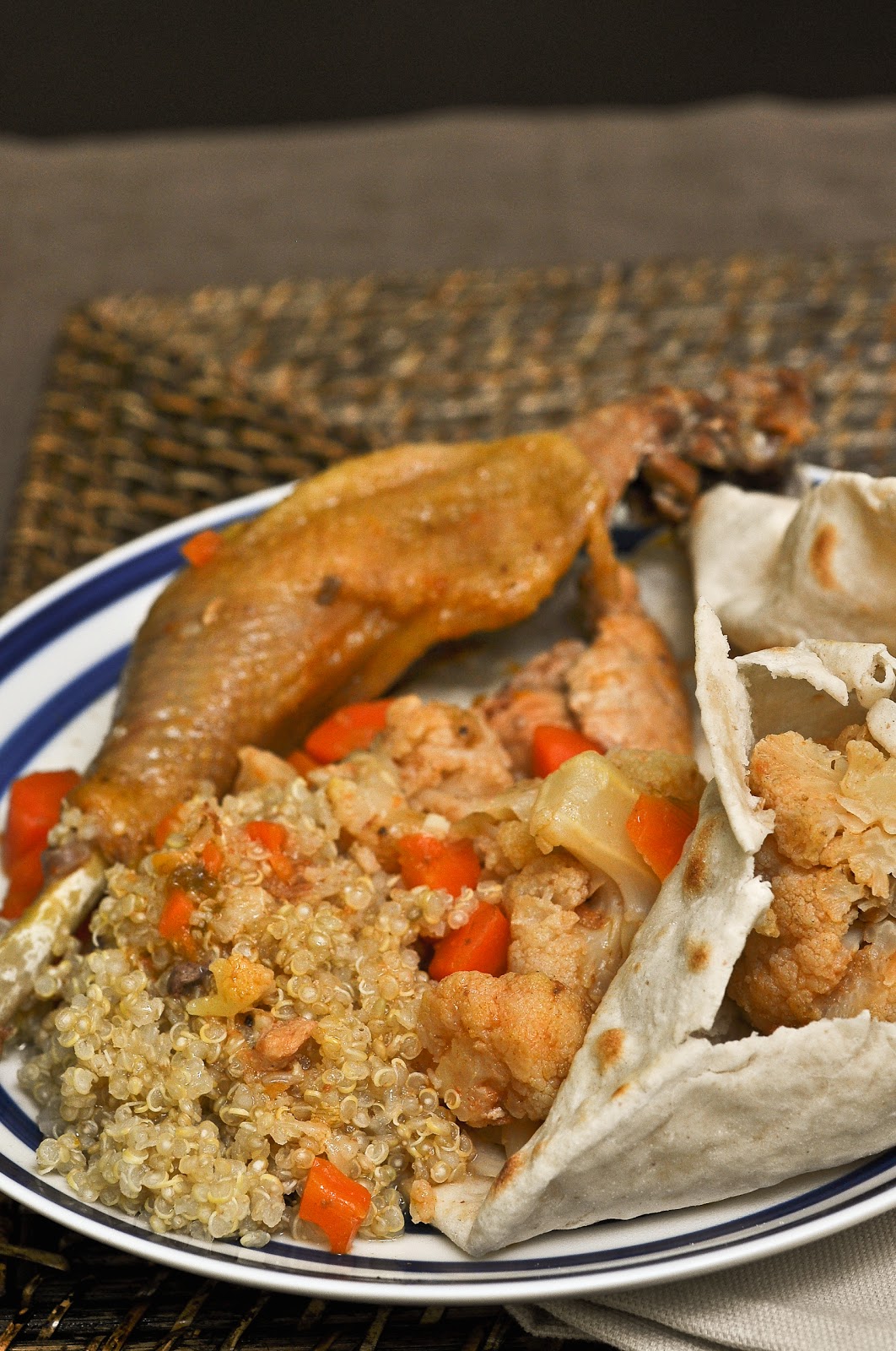 Così sono arrivata a questa ricetta di pollo, accompagnata da verdure di stagione, reso speciale dal profumo delle spezie e accompagnato da una quinoa a cui non ho aggiunto nulla per rispettare il suo già intenso sapore.